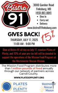 Want to be even smarter? Mention you’re with the Westminster Rescue Mission/Plates of Plenty fundraiser, and 15% of the pretax bill will help support the operations of the Mission Food Program.